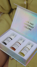 A nossa pele passa por várias fases e este kit é a solução perfeita para cuidar das necessidades da sua tez em cada ciclo. Com 3 óleos essenciais para hidratar e reparar a pele em profundidade, deixando-a luminosa e livre de irritações.